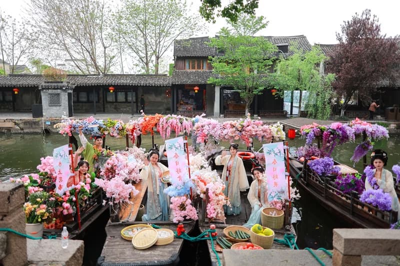 On April 12, 2025, the Xitang Hanfu "Twelve Floral Deities" Festival launched in Xitang Ancient Town, Jiashan County, drawing Hanfu enthusiasts nationwide to celebrate spring. The two-day event featured immersive activities like floral deity parades, riverside walks, traditional craft workshops (lantern-making, lacquer fan crafting, and hairpin styling), and a nighttime lantern-lit river procession. Innovative highlights included a surprise appearance by the mythical “Nezha” puppet and children dressed as “flower fairies,” blending folklore with modern playfulness. Visitors praised the picturesque ambiance, with many sharing photos to capture the town’s timeless charm. As a 2024 UNESCO-listed cultural exchange hub in Zhejiang, Xitang aims to further revitalize Hanfu culture through such events, bridging heritage with contemporary creativity.