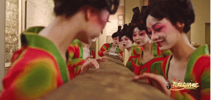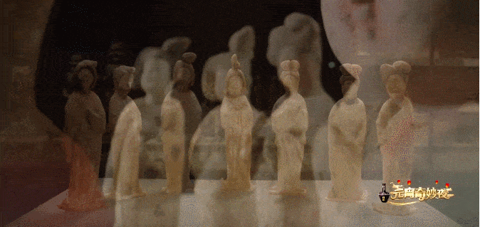 Then, the scene switched to the Henan Museum. When the night is late, tourists leave, a security guard of the Henan Museum played a bone flute, the display of the Tang figurines heard the sound of the bone flute instantly transformed into human form.