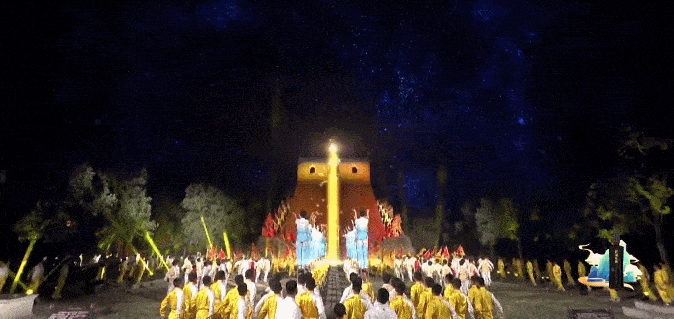 From the stargazing platform in the museum, the Tang figurine girls also travel to the stargazing platform in Dengfeng, where a martial arts performance, "Dou Zhuan Xing Yi", is being staged.