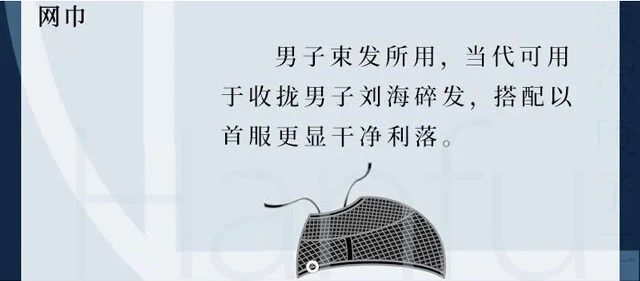 It is used for men's hair restraint, and can be used to gather men's bangs in contemporary times, also used with a headdress for a clean look.