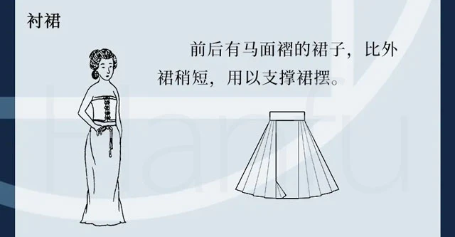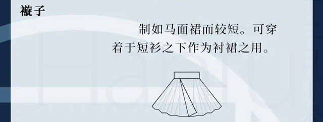 Shaped like a Mamian skirt but shorter, can be used as a petticoat with a Duanshan.