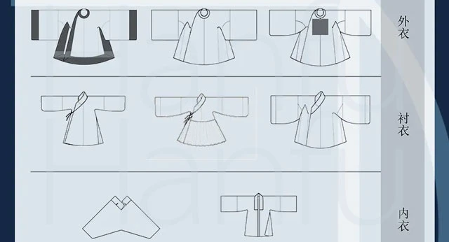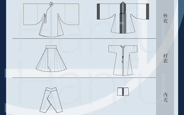 The ancient Chinese costume Hanfu system can be divided into two categories: the "Fa Fu (法服)", which was based on the ritual and music system and the "Bian Fu (便服)", which was not limited by the rank system.