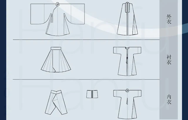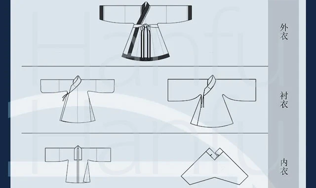It belongs to the outer clothing layers. It is one of the most solemn dresses in the contemporary men's Hanfu system and is not suitable for daily wear (the same applies to the hanfu womenswear system in the article).