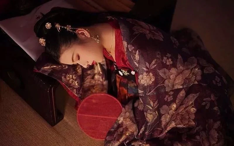 When you find something to depend on, relax, and make your sleeping position look more natural. By using stone tables, branches, stone steps, and so on, the overall texture of the later photos will be quiet and peaceful.
