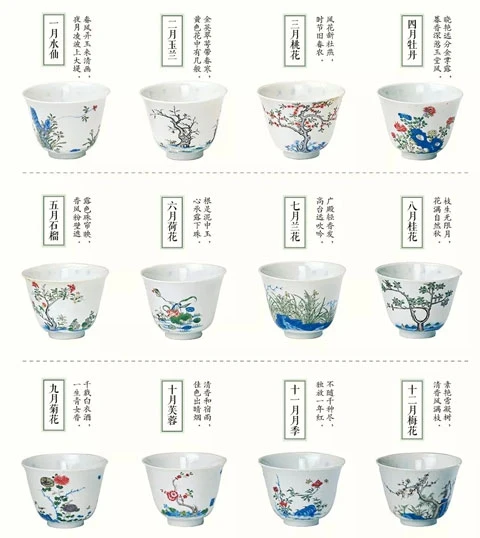 Five-colored Twelve-Month Floral Pattern Cup, Qing Dynasty Kangxi, Collection of the National Palace Museum, China