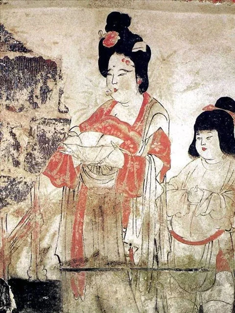 Although Hezi Qun has not yet appeared in the excavated artifacts, the possibility of its existence should not be directly eliminated. The pictorial material still has considerable reference value, and in addition to the "Court Ladies Adorning Their Hair with Flowers", there are other mural materials in which the style of "Hezi Qun" appears, although it may not have been called "Hezi Qun" at the time.