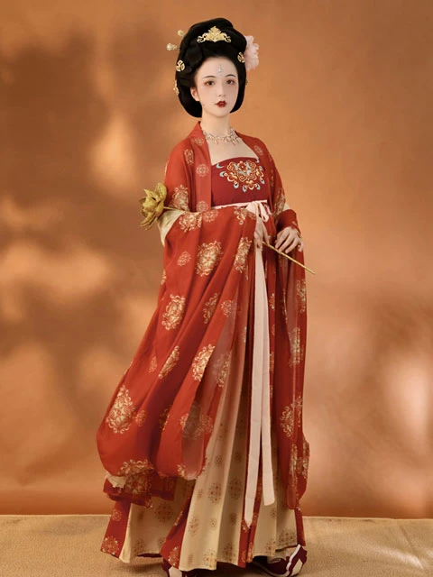 After the flourishing Tang Dynasty, the style of women's clothing became wider and wider. In the middle and late Tang period, this feature became more obvious, and the general women's clothing, sleeve width is often more than four feet.