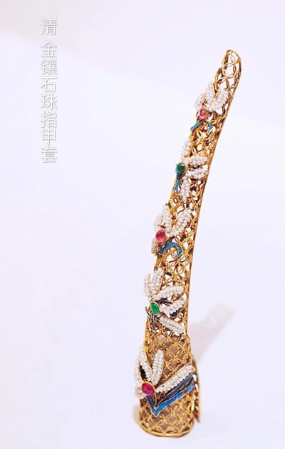 In the Qing Dynasty, the style and material of finger guards have changed a lot, the ornamentation is extremely beautiful, in addition to the traditional gold, silver, copper and other metals, cloisonne, and other materials also gradually prevailed, in the late Qing Dynasty, the Chinese nail guards of magnificent reached its peak.