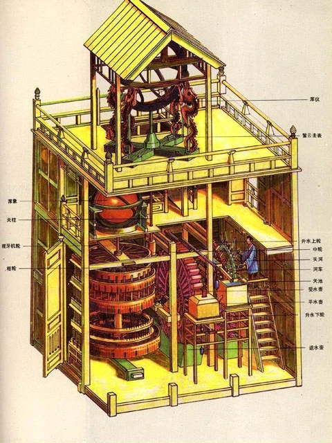 The Su Song Clock Tower, erected in 1088, is an early example of the developed Chinese clockmaking art. Powered by a water wheel and with a chain drive, a kind of escapement regulated the wheels to mark astronomical movements with great precision.