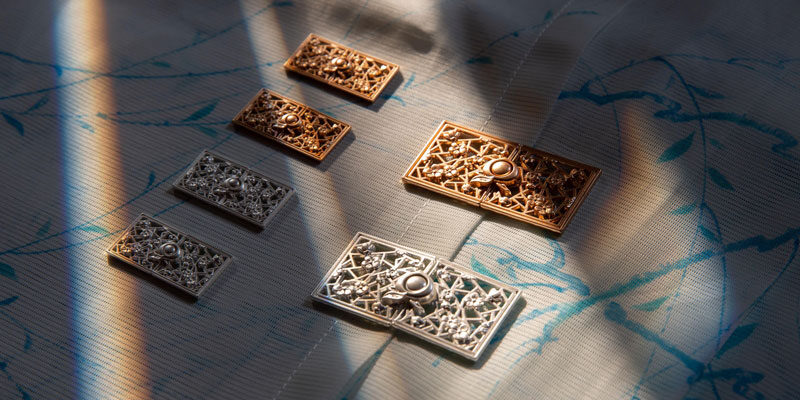 Zimu Kou (子母扣, metal clasp button) is the most common accessory for making Ming-style Hanfu, and if you make a Ming Hanfu yourself, they are a must-buy material. Usually, you need about 7-10 buttons to make a Duijin Duan Shan (对襟短衫) with a stand-up collar.