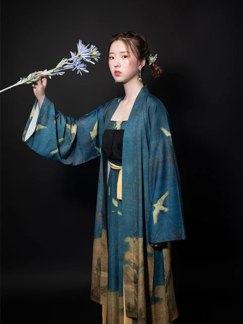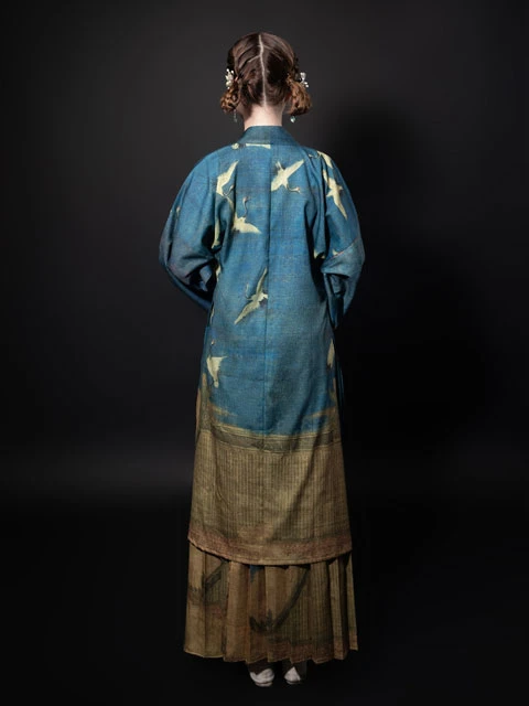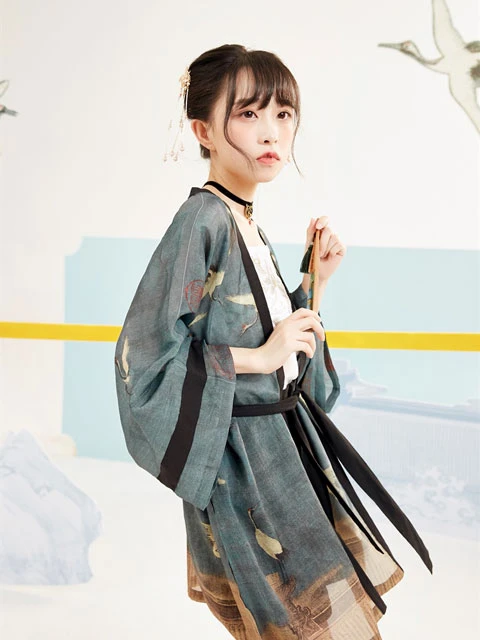 This set of Han elements incorporates "Auspicious Cranes" into modern clothing. The light fabric is more airy, and the pattern has a distinctive oriental charm. The overall style does not have a heavy sense of history, more suitable for everyday wear.