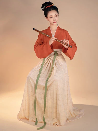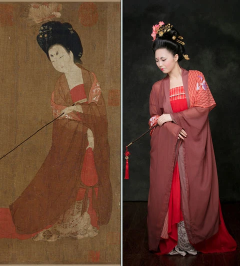 This Hezi Qun set is a perfect replica of the "tease the puppy" woman in "Court Ladies Adorning Their Hair With Flowers".