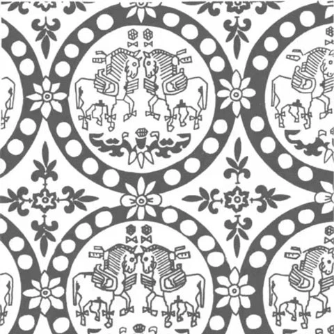 This pattern is based on the Western pattern, maintaining the traditional form of Chinese pattern such as four-sided continuous, replacing the Lianzhu patterns with circular flowers or scrolling grass, and replacing the Western mythological shape with the traditional Chinese animal theme.