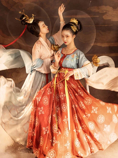 The culture of costume is closely related to the development of society, as early as before the Han Dynasty, dyed fabrics have been printed (with) traditional Chinese patterns, with the opening and development of the Silk Road, the spread of Buddhism, the Wei and Jin dynasties were more influenced by the Western Regions culture.