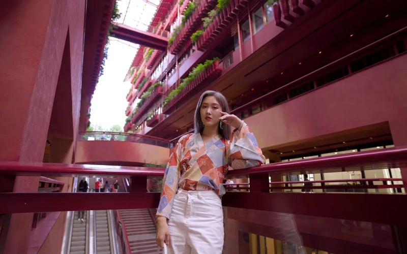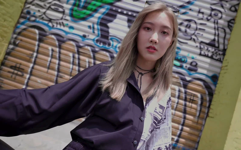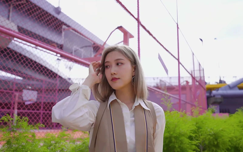 Shiyin's third look is based on a modified version of Ming-style Bijia, which adds a suit element to the traditional Bijia. Inside with a simple white shirt or white T-shirt. The lower clothing chose the same color preppy style pleated skirt. The overall look is very age-defying and youthful.