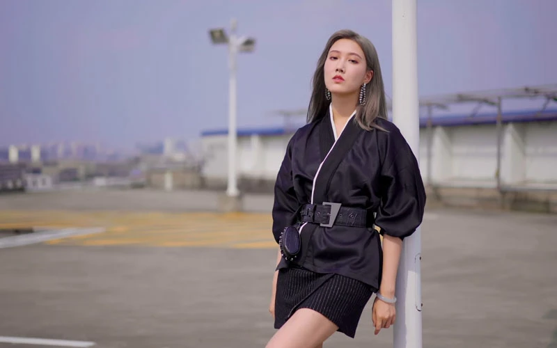 The fourth set of mix-and-match Hanfu items is a Song-style airplane sleeve short shirt. On top of the original short shirt, add a metallic belt of the same color to accentuate the waistline. Underneath, choose a short skirt of the same color. Finally with a pair of high heels, perfect.