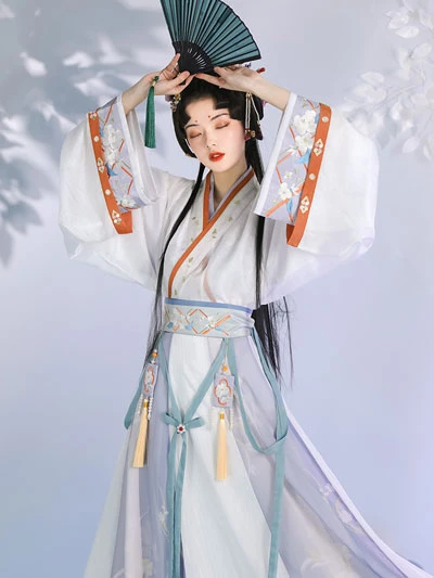 The "Wei Jin Style Hanfu" is not strictly speaking part of the traditional Chinese costume, it is based on the improvement of the hanfu and the style of dramas, and the design of this costume fulfills people's fantasy of the Wei Jin style. It is characterized by a flowing and elegant style, with the usual cross-collar shirt with large sleeves, wide sleeves and a wide skirt.