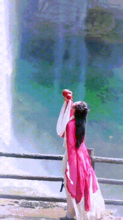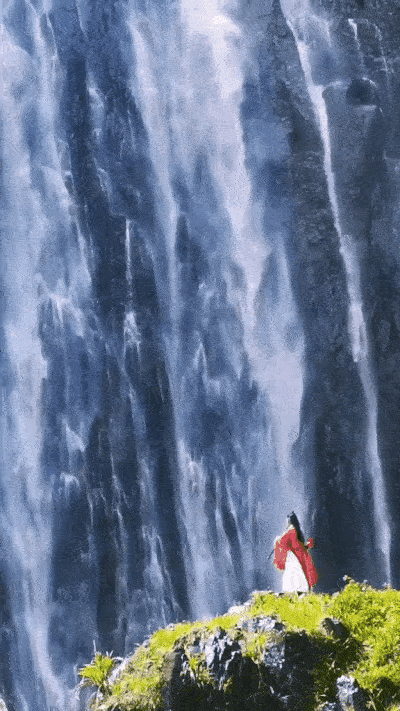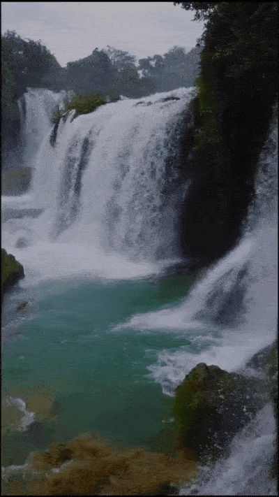 In Detian waterfall, as if the "The Journey of Flower" of the immortal monarch.