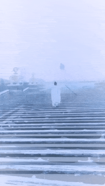 In Emei Mountain in Sichuan, amidst the white snow, he is like a fairy immortal in the sky, falling into the people with ease.