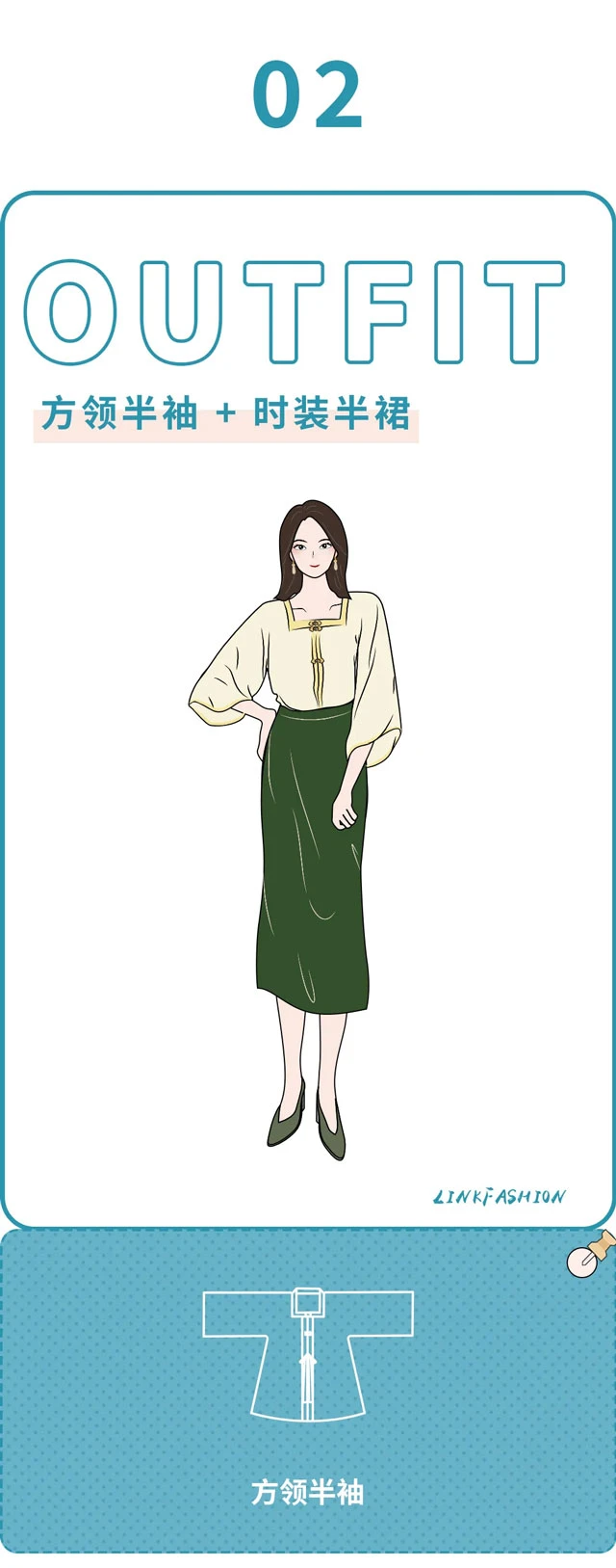 Hanfu square neck half-sleeve + fashion tailored dress