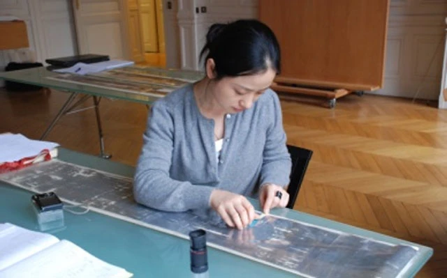 In 2006, at the invitation of the British Museum, Zhao Feng went to the UK for the first time to study all the Dunhuang textiles collected by Stein and then housed in London. Subsequently, Wang Le (王乐), a professor at the School of Fashion and Art Design at Donghua University, and Xu Zheng (徐峥), a researcher at the China Silk Museum, joined the team and together they researched the textiles in the collections of The British Museum, The British Library, and the Victoria and Albert Museum, compiling and restoring their varieties, forms, techniques, structures, textures, and visual effects from a scientific and artistic perspective.