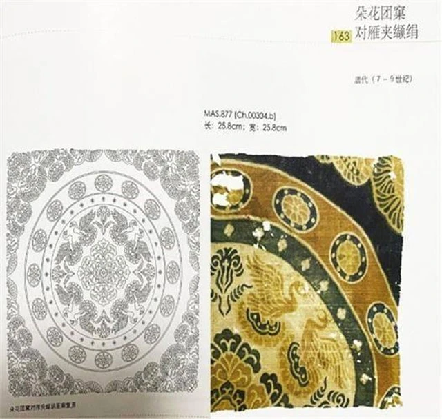 "Dunhuang, as the hub of the Silk Road, documents its silk weaving not only from the East, but also from the Central Asian." By comparing the specifications and technical characteristics with those of the Central Asian system of brocades, Wang Le pointed out that nine of the extant Dunhuang fabrics from the Tang to the Fifth Dynasties are Central Asian system brocades, and that some of the popular Baohua patterns from the Central Plains appear on these fabrics.