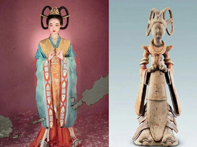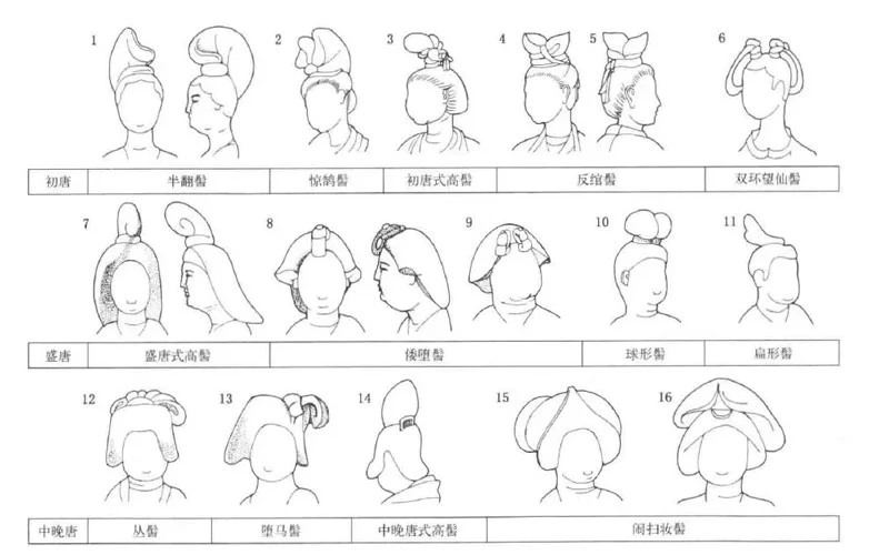 These Tang Dynasty hairstyles mentioned above can also be summarized in the chronological order of their popularity into a history of the evolution of trendy hairstyles for female figurines in the Tang Dynasty.
