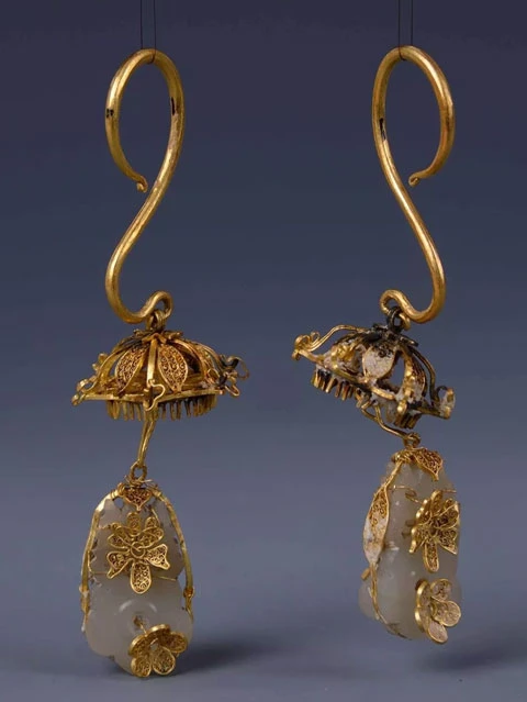 Ming Dynasty gold Leisi earrings with jade