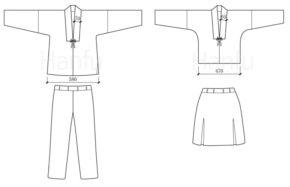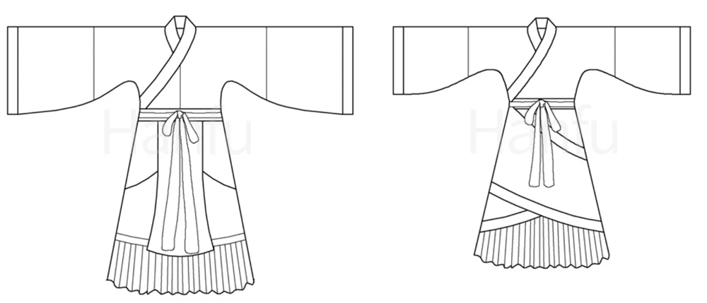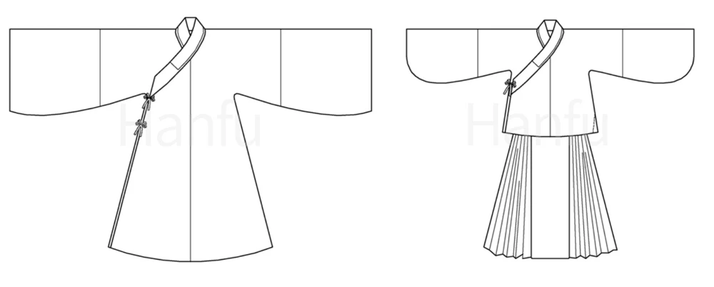The "improvement" referred to here is not to develop to Western-style three-dimensional cutting, but to make certain modifications to the hanfu pattern, such as reducing the sleeve length and cuff width, and making slight modifications to the shape to make it more suitable for matching with modern clothing, combining tradition with fashion, while maintaining the basic shape and flat cutting method of hanfu.