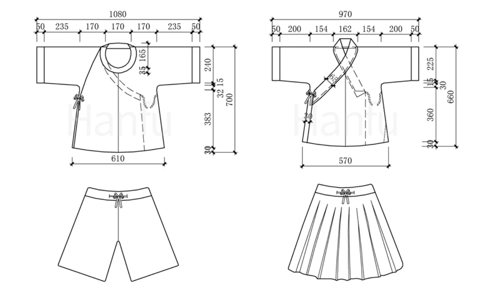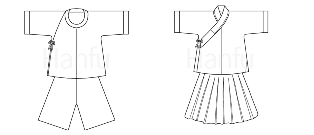 The hanfu uniforms in this section are inspired by suit dresses and are divided into male and female versions. The improved hanfu tops are paired with western pants and western skirts, both in the form of traditional diagonal lapels. This section of the hanfu student school uniform is also inspired by modern dress, with a round neck Banbi paired with shorts and a cross neck Banbi with a short skirt.