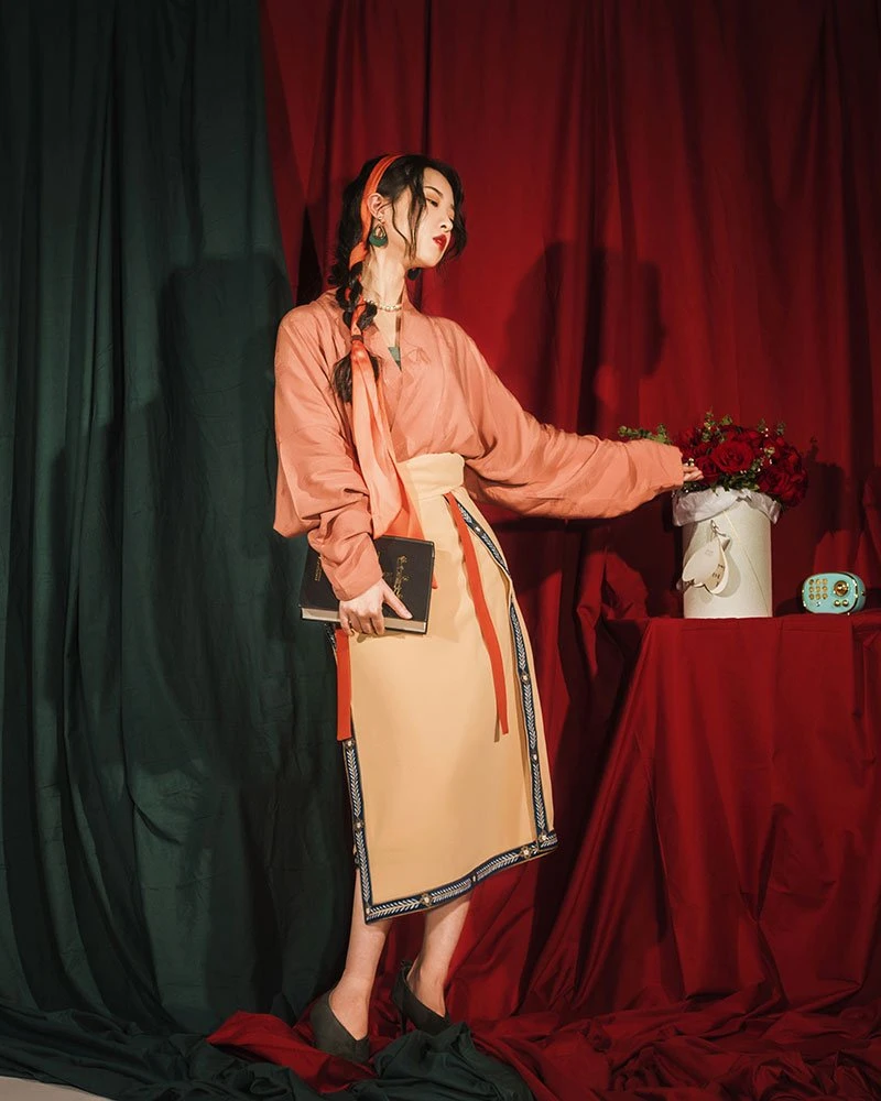 ▲The more fashionable tube skirt can replace the lower skirt of Beizi (褙子), the highlights of color matching and overall softness rise.