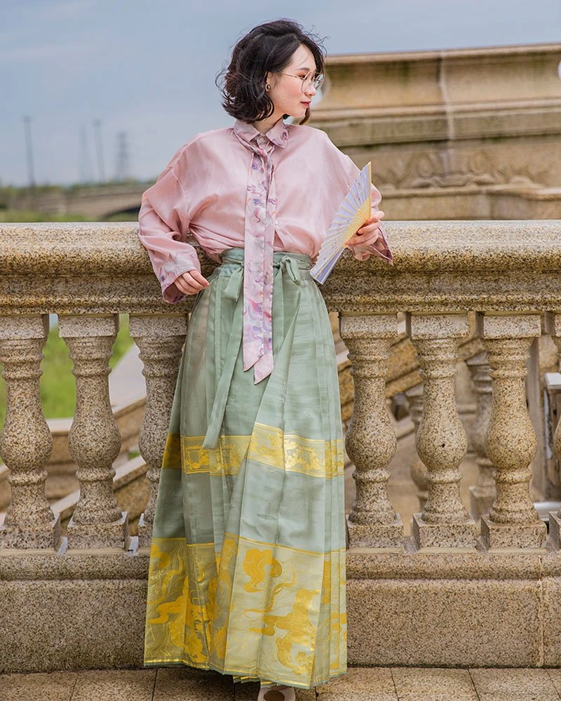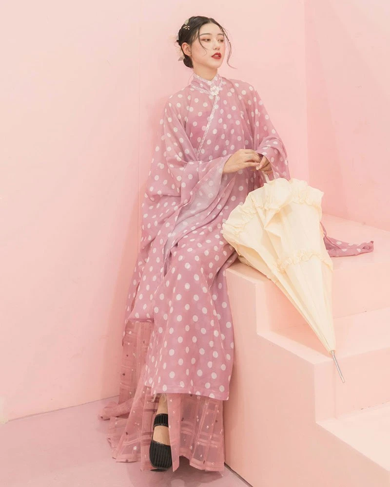 ▲Dot and light skirts are very slim, can be matched with Bijia (比甲) to become a modern girl.