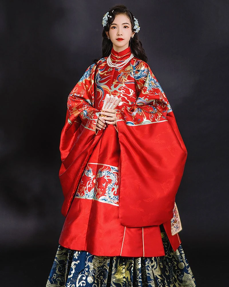 - Qun: there are different ways to match the Ao in different dynasties. In the Tang Dynasty, the broken skirt (a skirt is sewn together with trapezoid fabric) was used, in the Song Dynasty, the pleated skirt was used, and in the Ming Dynasty, the horse-face skirt (horse-face pleats skirt)was generally used.
