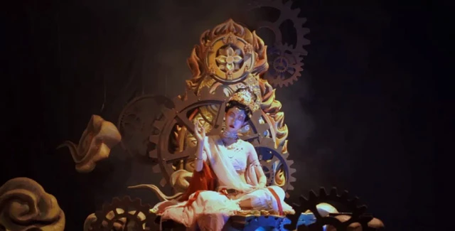 The same two sets of makeup, the first set is more inclined to restore Dunhuang frescoes, high-saturated colors are rich and exquisite, the costume added some modern elements, arm models modified into "mechanical arm".