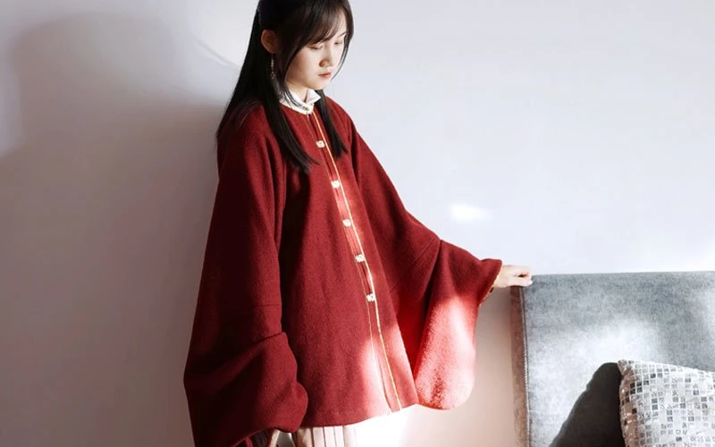 ▲ the long coat is the easiest to make velvet surface in Hanfu Red with green, classical, and retro.