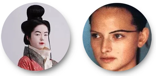 This exaggerated eyebrow shape that occupies half of the forehead is rarely seen in modern times, only in the show makeup and restoration makeup in a glimpse of its appearance.