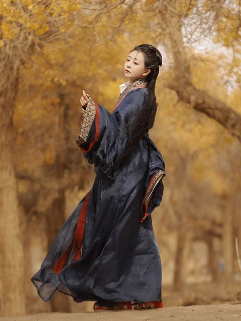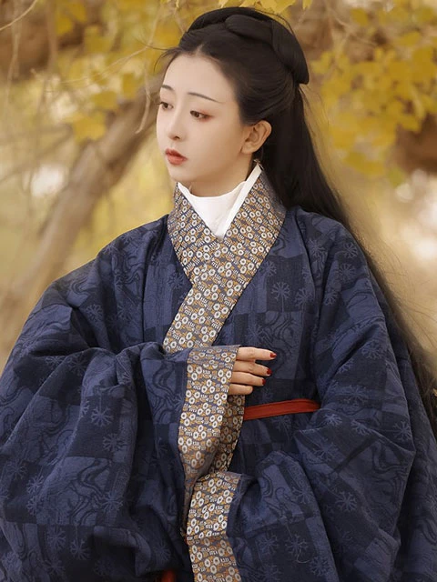 This hanfu was created in accordance with the description of Zhiju in ancient texts, giving a dashing and suave feeling overall, which is extremely in line with the dressing pursuit of people in the Eastern Han Dynasty.