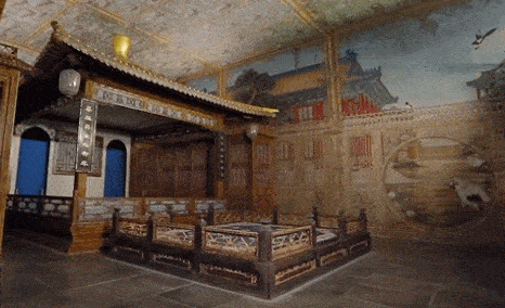 Through the mirror door, came to the most colorful place in The Rest Lodge: the Palace's only well-preserved Scenic Illusion Paintings. It uses the brush and ink of Chinese painting and blends with the most popular Western baroque art style of the time, which is not only beautiful, but also comes with a strange effect of 3D.