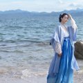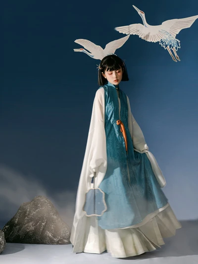 Similarly, the cyan green color in "A Thousand Li of Rivers and Mountains" seems to be more like a color inspiration, which inspired the creation of the hanfu color scheme. The green-based spring hanfu presents the most beautiful colors of the season in a variety of ways.