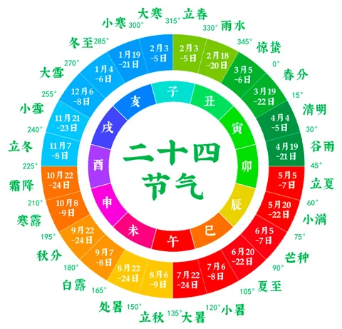 The 24 Solar Terms, a supplementary calendar established in ancient China, first appeared in the Han Dynasty. The current "24 Solar Terms" are based on the position of the sun on the return ecliptic, i.e. the annual movement of the sun is divided into 24 equal parts, with every 15° being one equal part, and every one equal part being a solar term, starting from the beginning of Li Chun and ending at the end of Da Han.