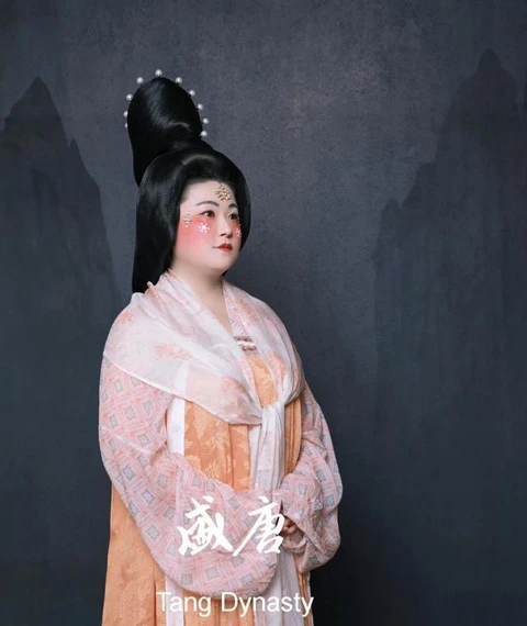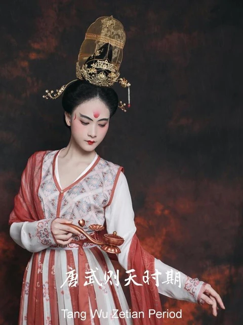 The makeup of the Wuzetian period has a white and delicate base makeup and thicker eyebrows. In addition, it will be embellished with slanted red and flower inlay. At that time, the makeup actually looked lighter, and since then, it started to become more colorful.