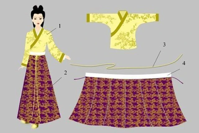 Ruqun is actually a combination of two kinds of clothes. The short top shirt is called Ru, and the long skirt is called Qun, so it is a typical two-piece garment.