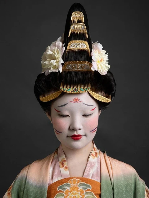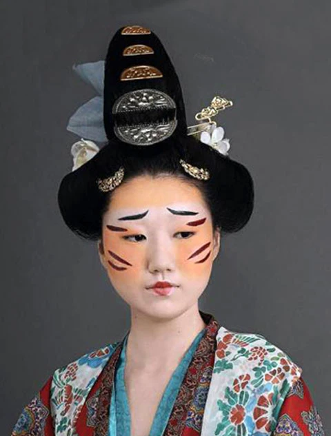 In the middle of the Tang Dynasty, women's hairstyle, makeup, jewelry, and dress style has undergone a huge change. Heavy makeup and high buns, long skirts with large sleeves prevailed, and formed a variety of distinctive makeup styles.