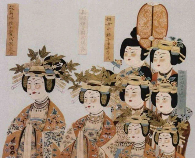 In the later period of the Tang heyday, small combs were inserted on the front side of the temples and became popular. For example, in the Dunhuang mural "Donor portrait of Lady Wang from Taiyuan in worship" , several small combs were inserted on the front temples of several ladies, gradually developing towards decoration.