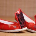 The unique shoes of the Qing Dynasty are Qi shoes, also known as "flower pot bottom". Its sole is made of wood, wrapped in white cloth, and the upper and vamp are decorated with various embroidery patterns.