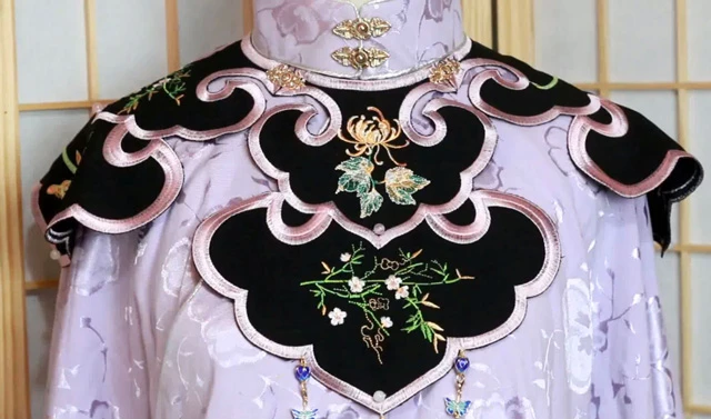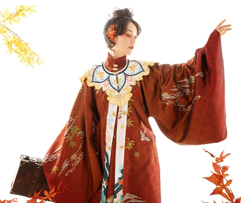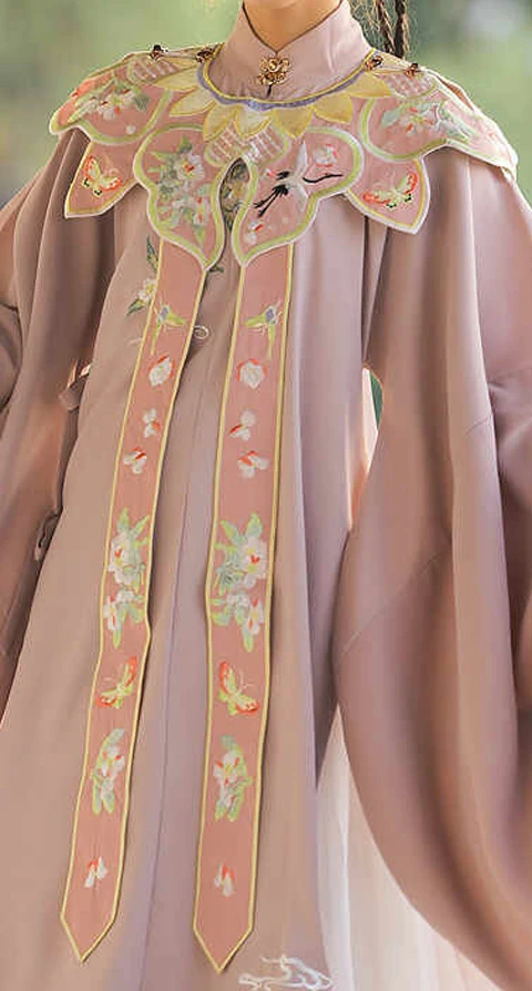 Yunjian (云肩), is considered to be one of hanfu's accessories. It is often matched with Ming Dynasty clothing, such as long tops (长袄) and folded skirts, known as mǎ miàn qún (马面裙).