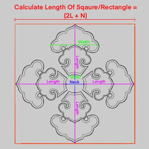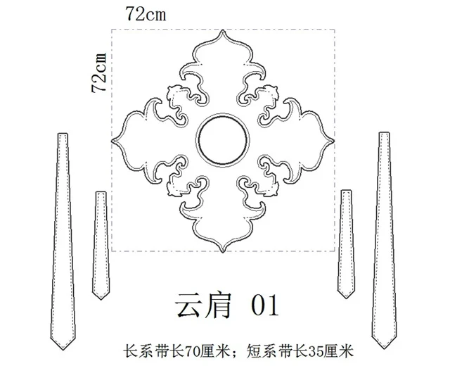 With the styles and measurements down, you can start sketching out template pieces on paper, cardboard, or anything that allows you to cut out the sketch and transfer it to cloths. For this tutorial, I’ll use Sihe Ruyi (四合如意式) cloud style. Since it’s going in four directions, there are a total of four pieces I need to make.