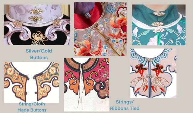 Here is a few example imgaes of buttons or ribons to connect the splitted part of yunjian.