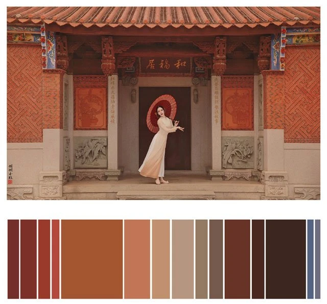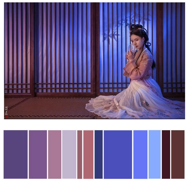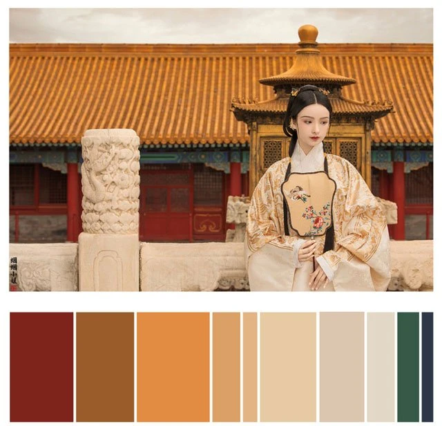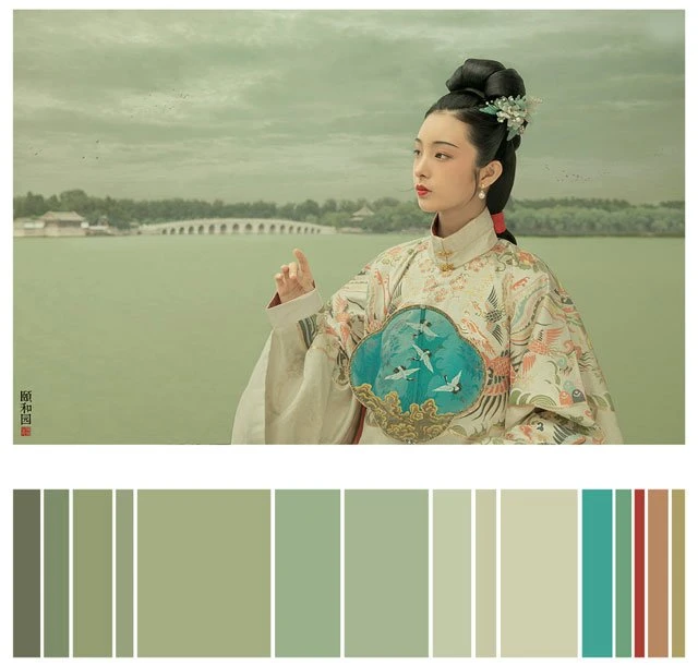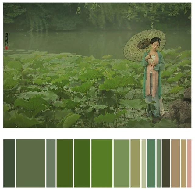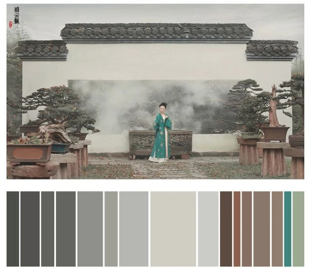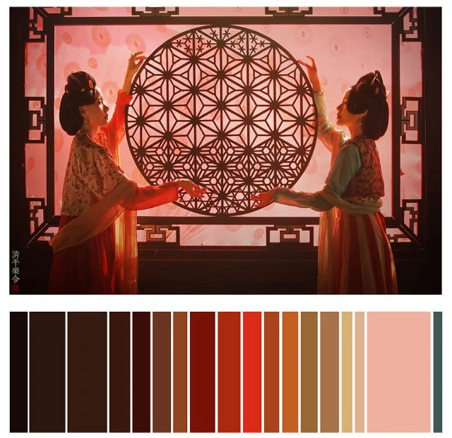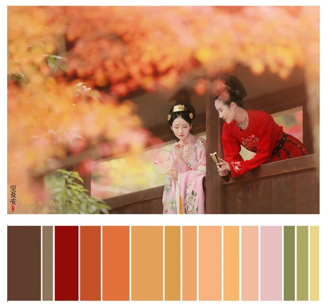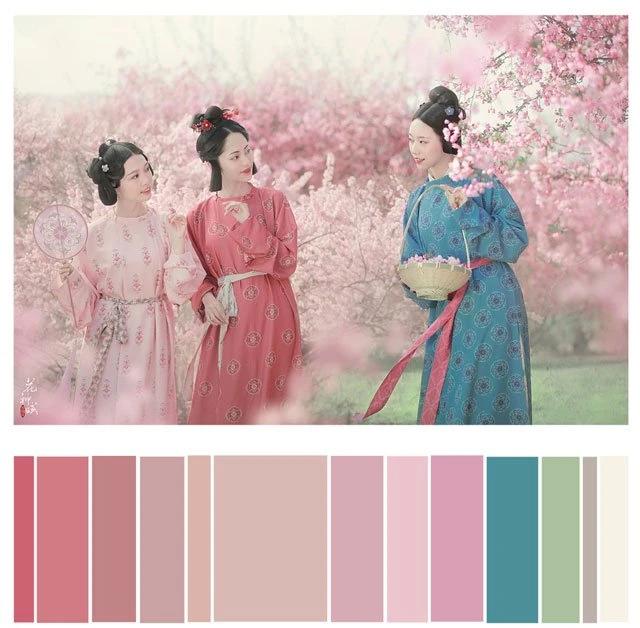 The color of a Hanfu photo is very important. Whether a photo can attract you at first sight depends on the color. It's a subject of learning whether the color matching is harmonious. Here, 26 photos are selected and color cards are made according to the color scale for your reference. Photo source: photographer Miss Guoguo (摄影师蝈蝈小姐).