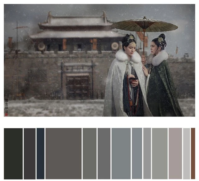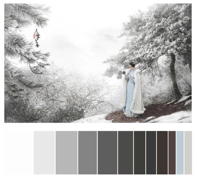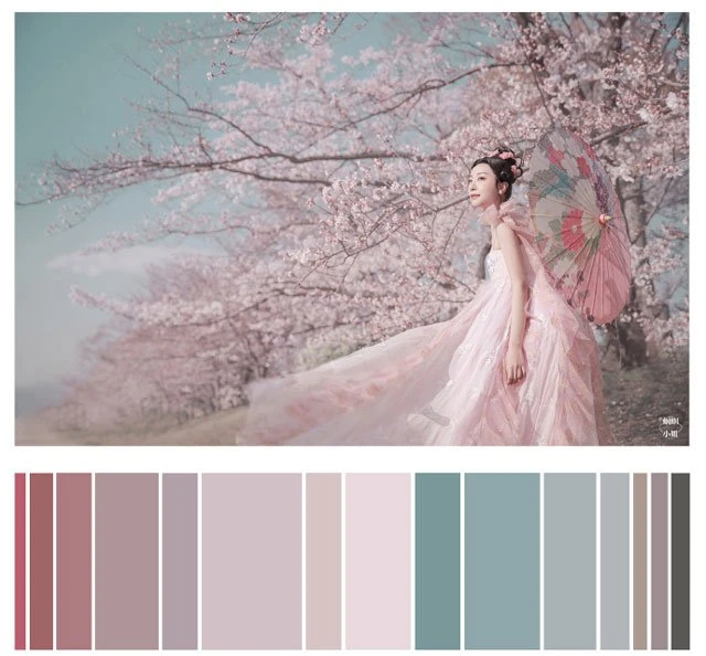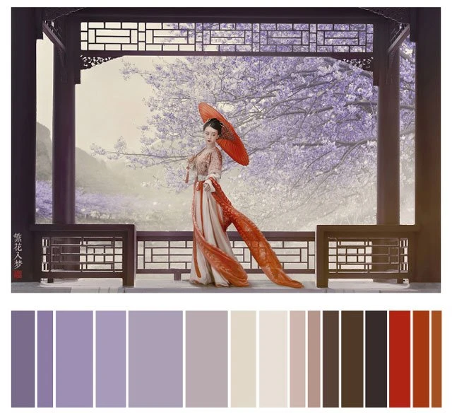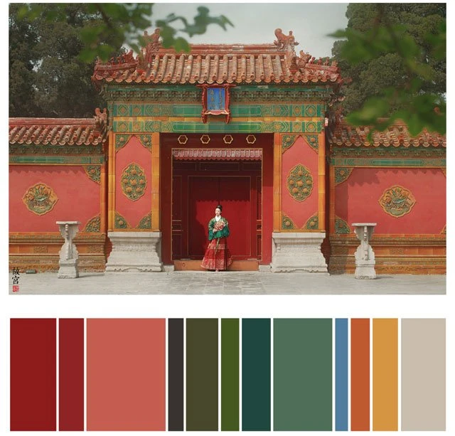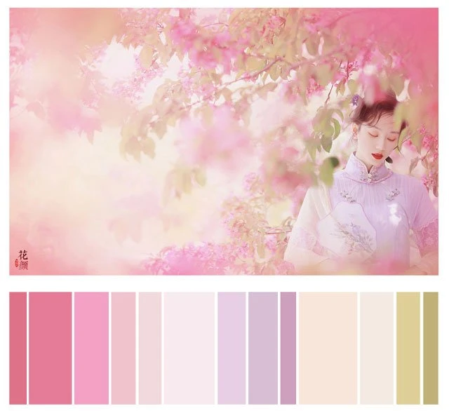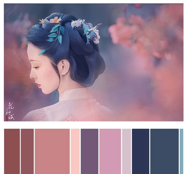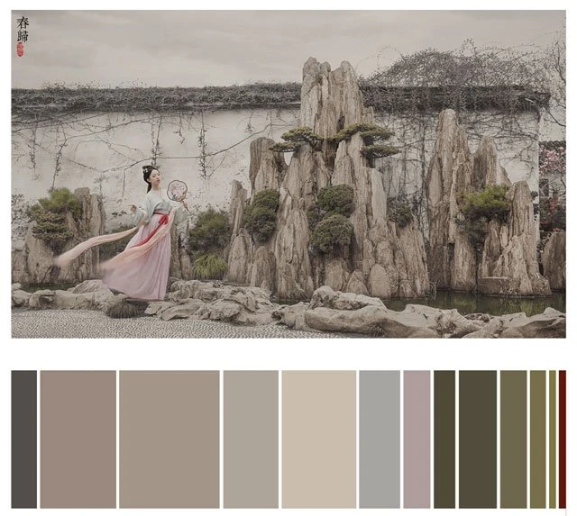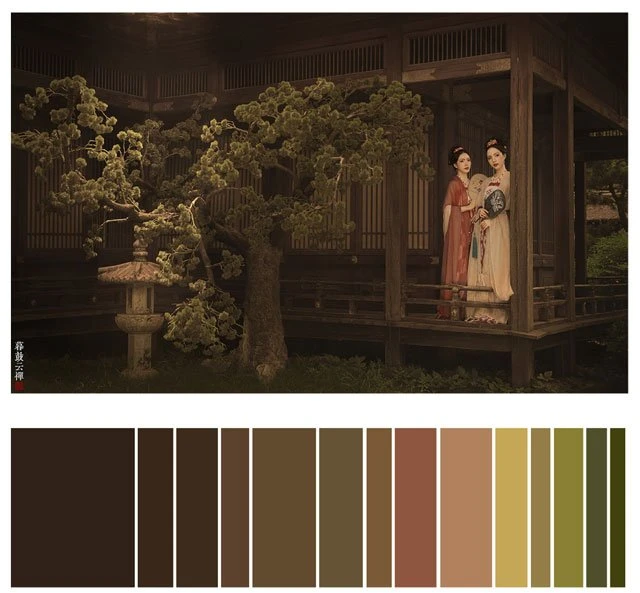 The color of a Hanfu photo is very important. Whether a photo can attract you at first sight depends on the color. It's a subject of learning whether the color matching is harmonious. Here, 26 photos are selected and color cards are made according to the color scale for your reference. Photo source: photographer Miss Guoguo (摄影师蝈蝈小姐).